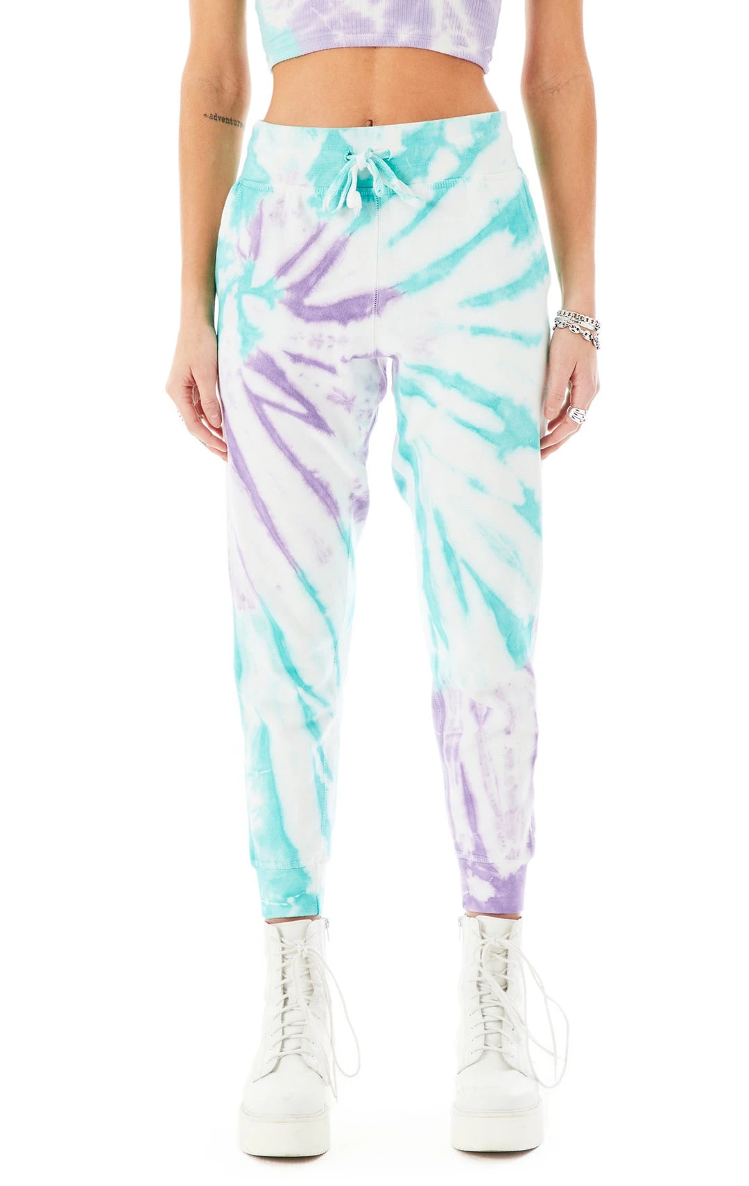 Add some fun to your wardrobe. These ultra-comfy aqua and purple cloud tie dye sweatpants will be your new go-to this spring. Complete with a soft ribbed hem, drawstring waist and of course, pockets- you’re gonna be obsessed. Social distancing never looked so good until now. Did we mention we have matching firework tie dye sweatshirts?