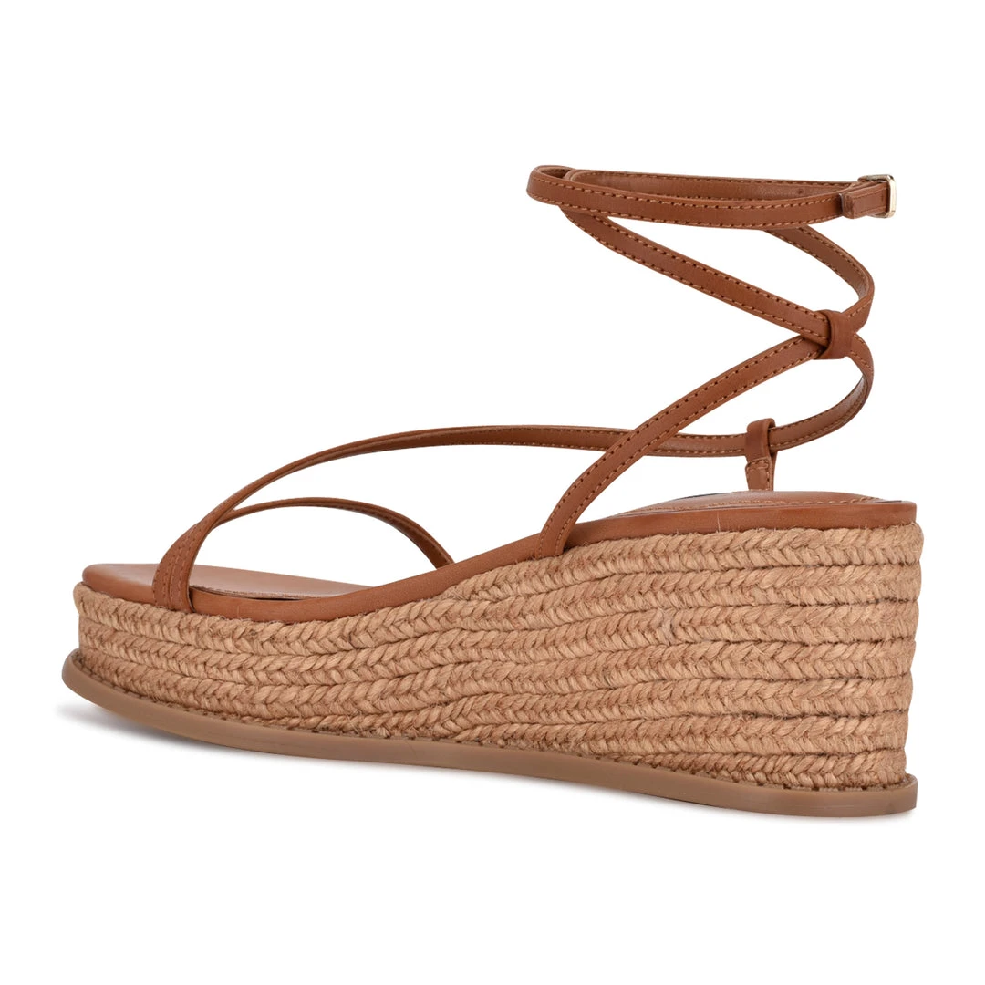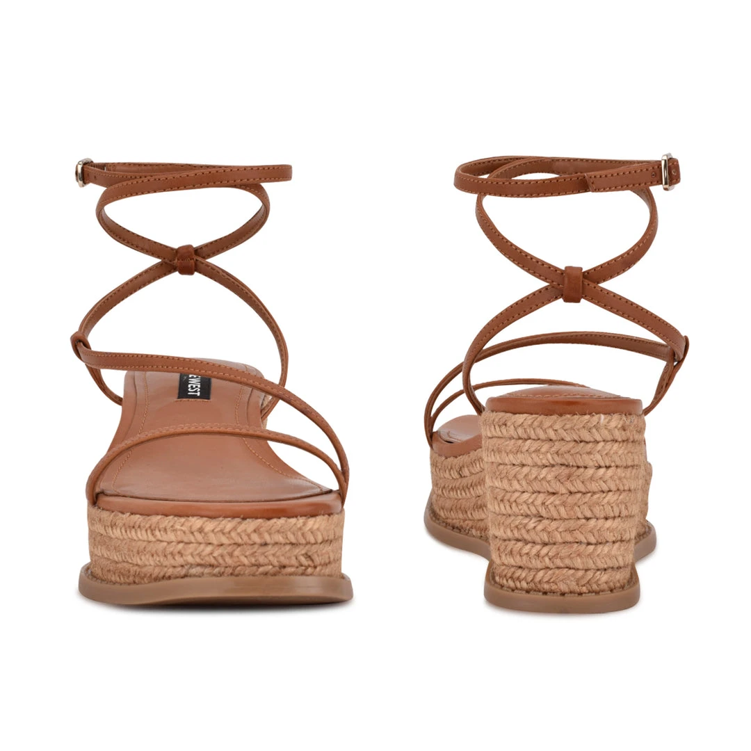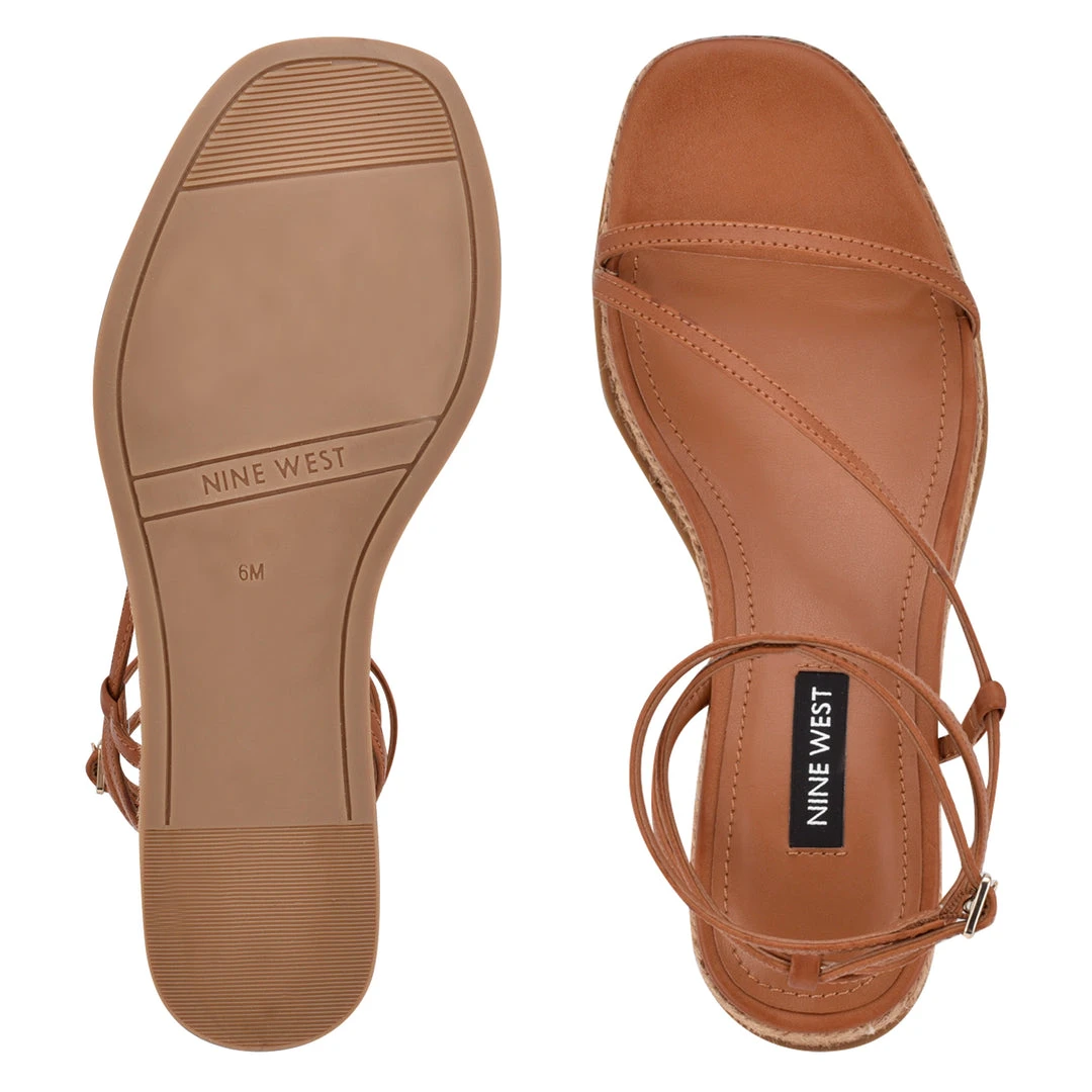 The Nine West Alexx platform sandal is a trendy addition to any warm weather wardrobe. The espadrille style flatform silhouette gives you the extra height you want with all the comfort of a flat. The asymmetrical skinny straps are paired with an adjustable ankle wrap strap.