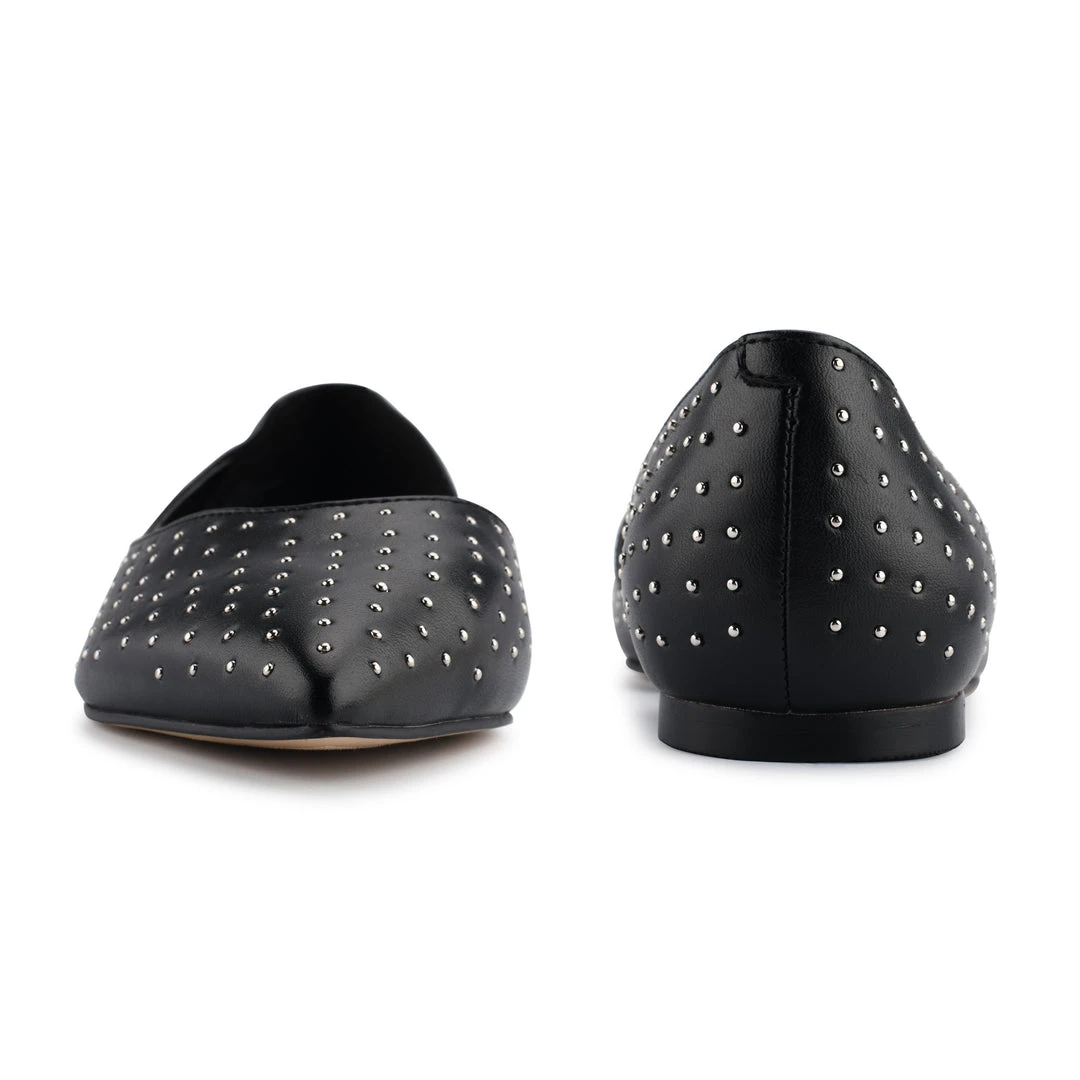 The Amore d’Orsay Studded Flats in our ballet collection feature a low heel and pointy toe.
