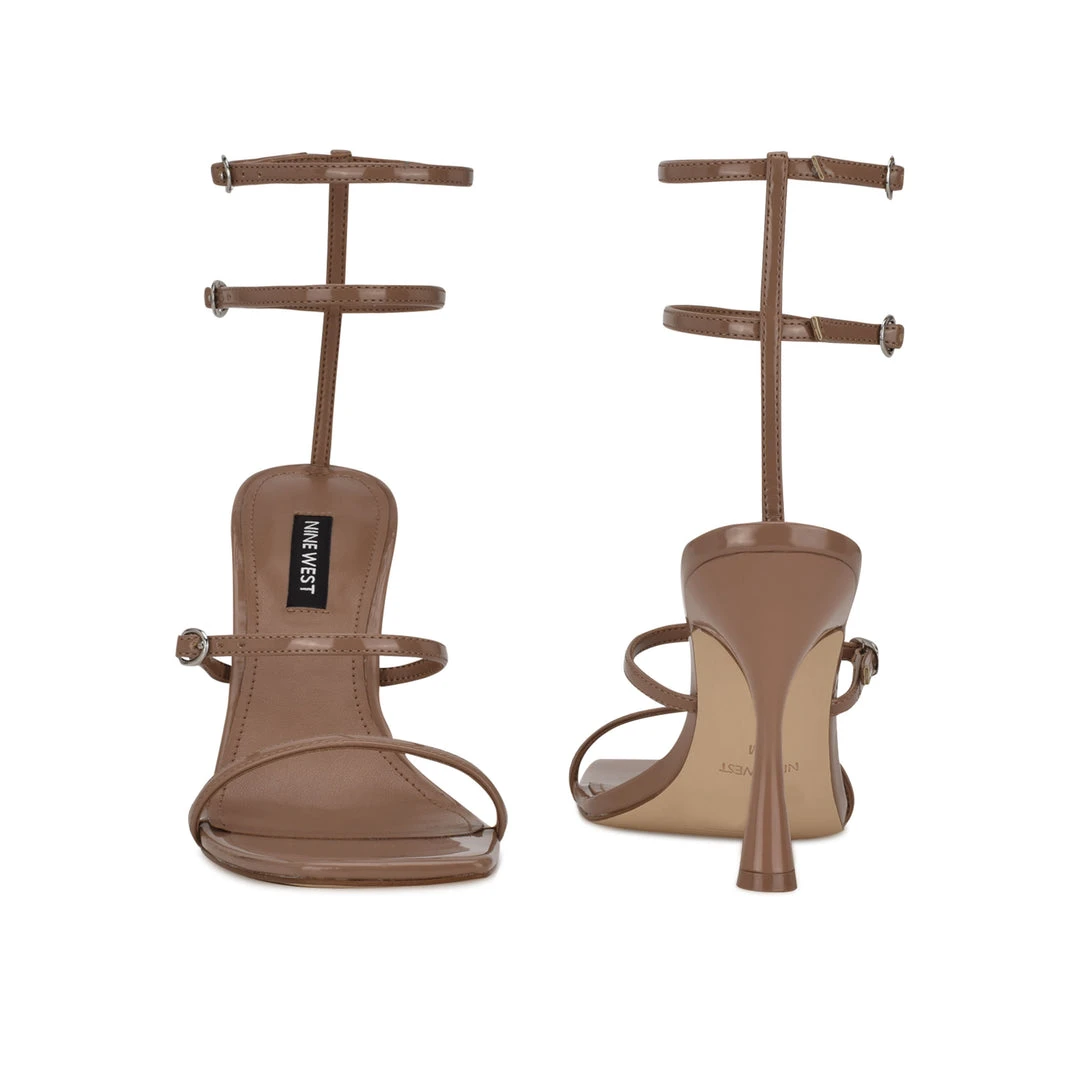 Need an ultra sexy yet simple shoe for your wardrobe? The Aves strappy sandal is your answer. This barely there high heeled sandal features four ultra skinny straps across the foot and around the ankle, a modern square toe, and cylindrical high heel.