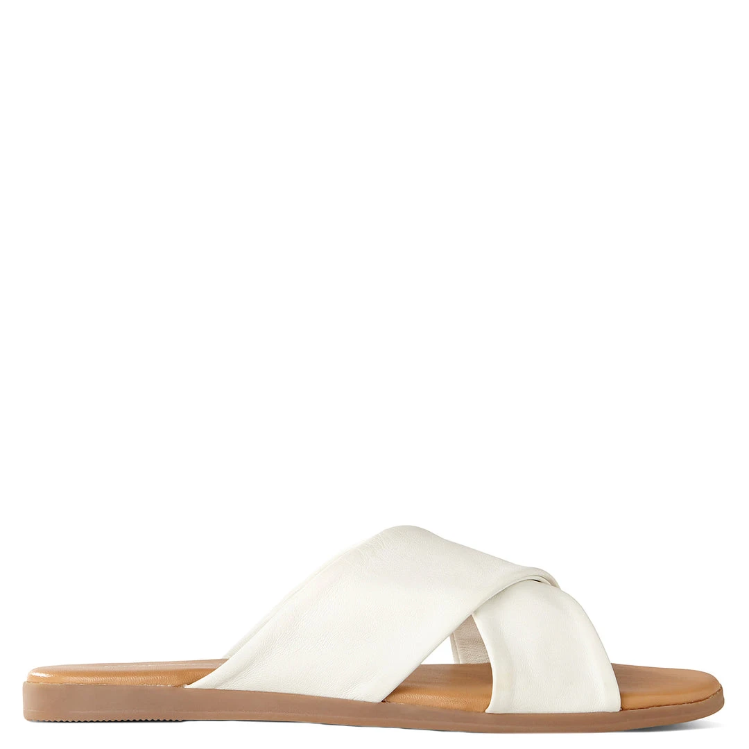 Crisscrossing leather bands make our Crush open-toe flat slide sandals an easy choice for everyday comfort this season.