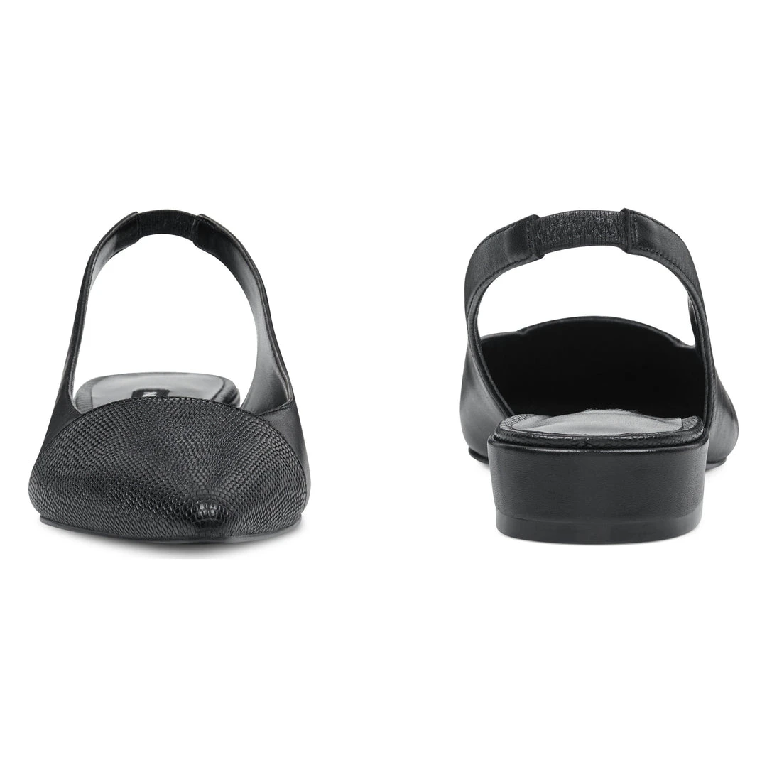 The Forlove Pointy Toe Slingback Flats are pointy toe flats with a low heel.