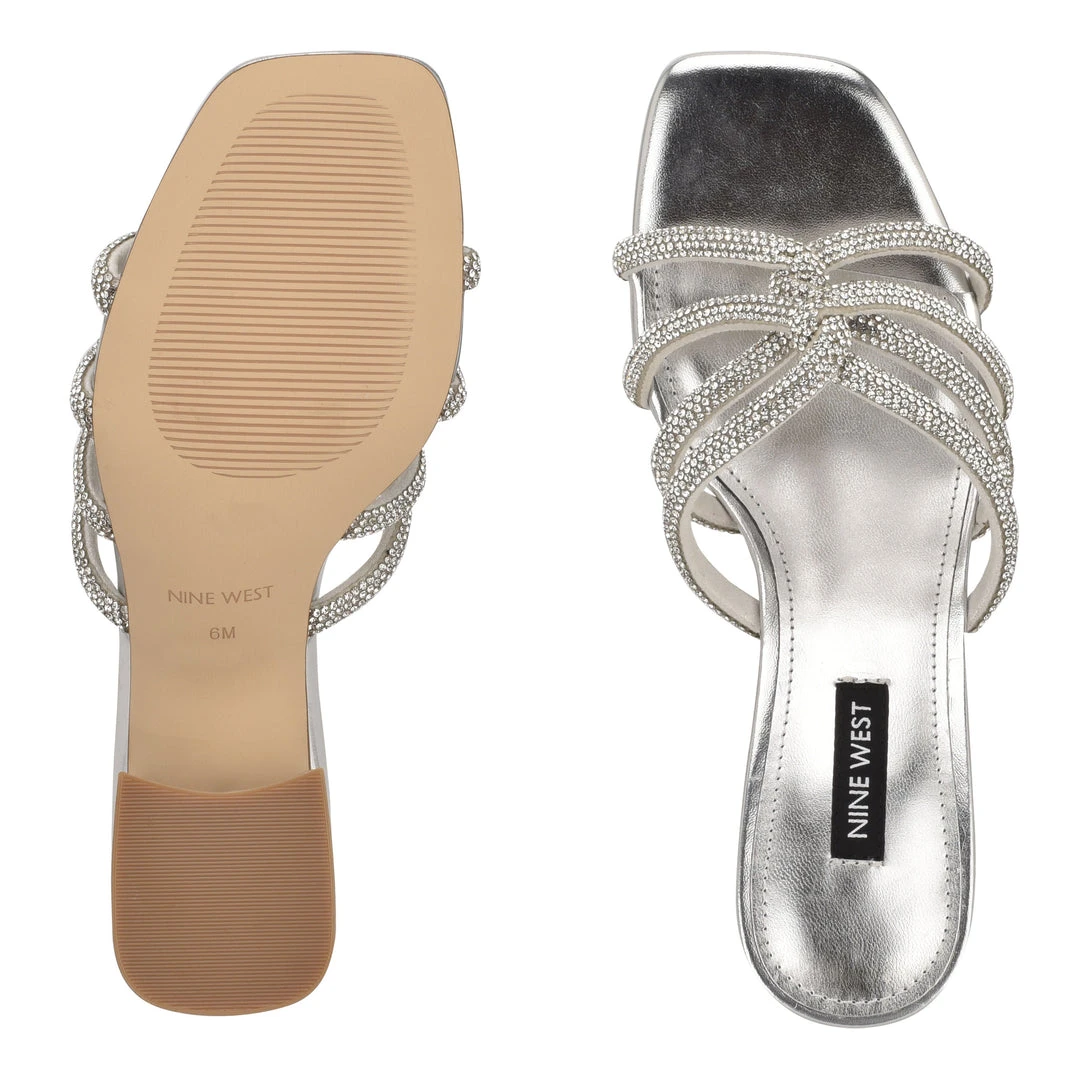 Nine West Metallic Mindset Glitz Block Heel Slide Sandals