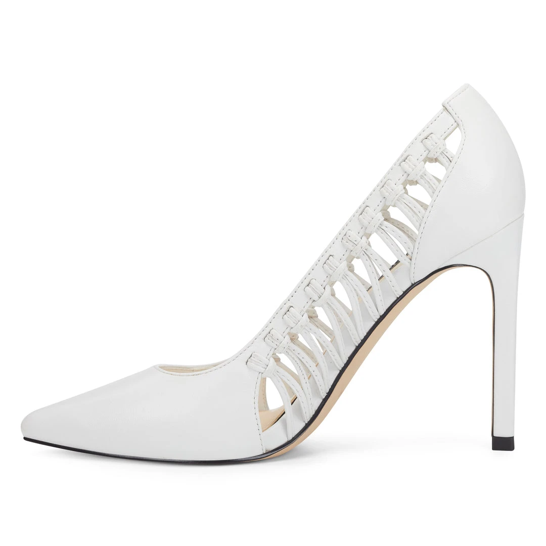 Lifted by a 3.94″ stiletto heel, our Tansy pointy-toe pumps are highlighted with woven sides for an added measure of sophistication.